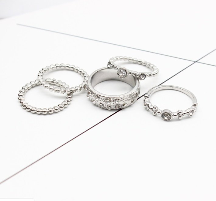 Product Name: Rose gold stackable diamond set five-piece ring European and American gemstone ring Fashion ring ring